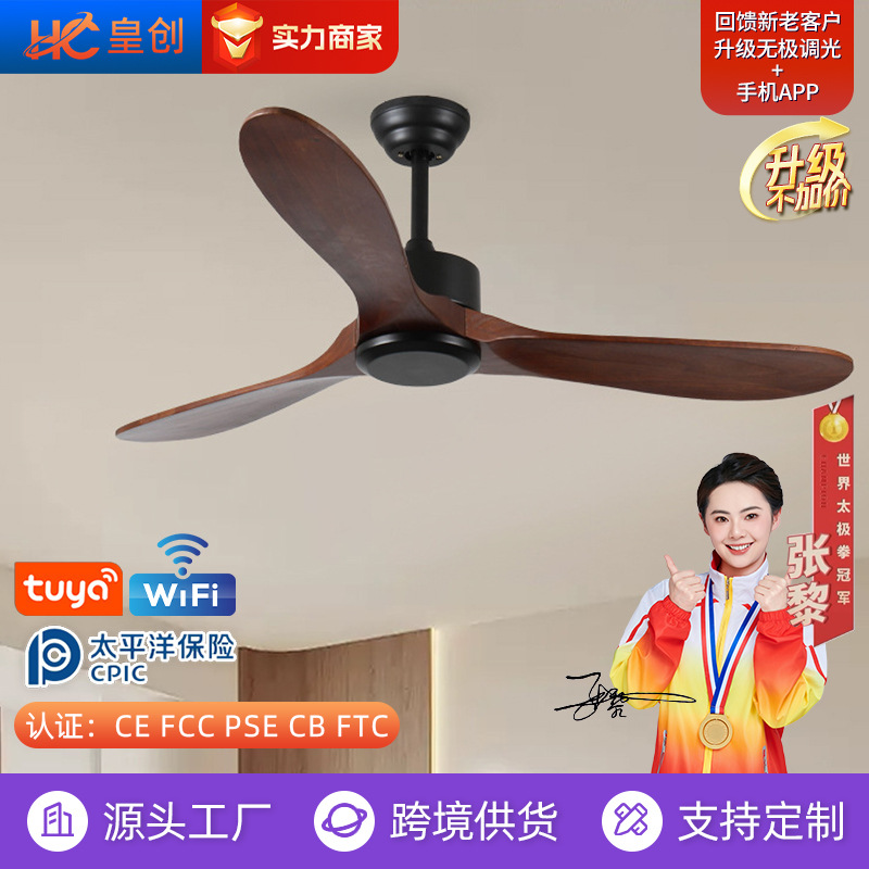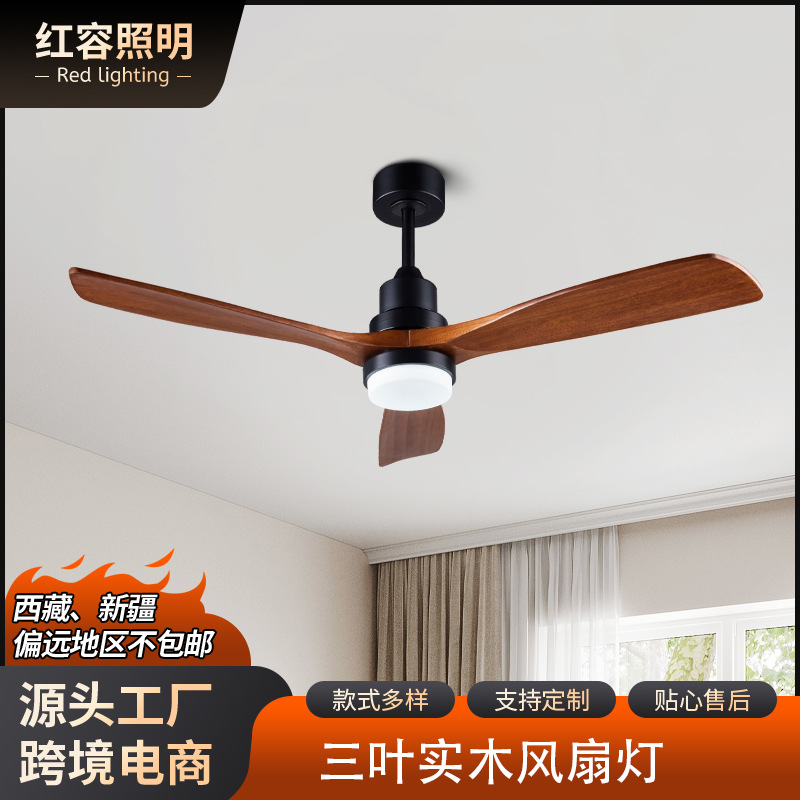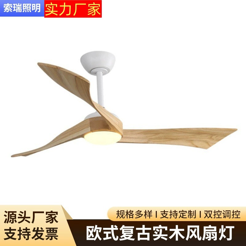 アメリカ中古実木ファンランプ家庭用レトロシャンデリアリモコン静音寝室リビングレストランハンガーランプcasa