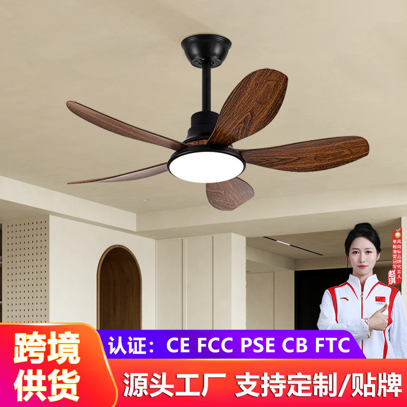 北欧レストランファンランプ工業風周波数変換大風力ファンランプ客間寝室実木110Vクロスボーダー専用供給