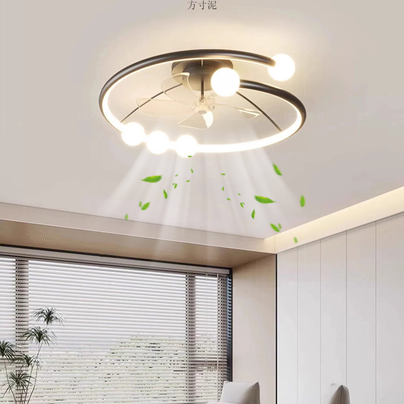 国境を越えた新型ファンランプレストランシャンデリア客間現代シンプル扇風機寝室書斎吸頂直葉扇