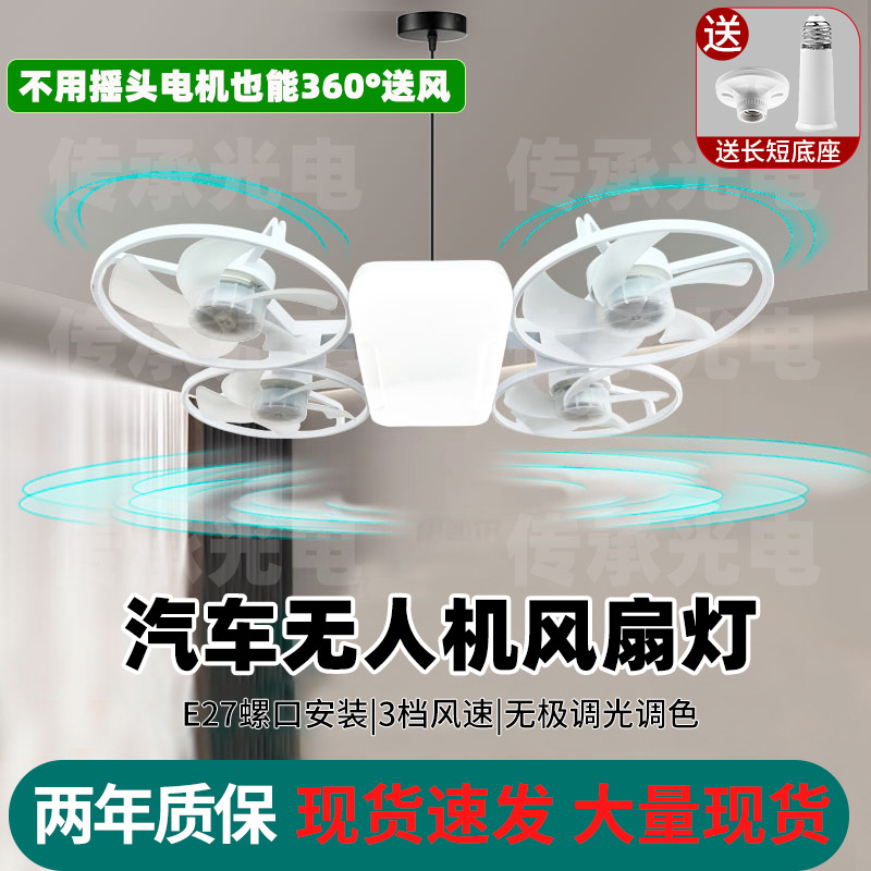 大風力無人機ファンランプe27ネジ口ファンシャンデリア寝室静音リモコンファンランプ目保護省エネ