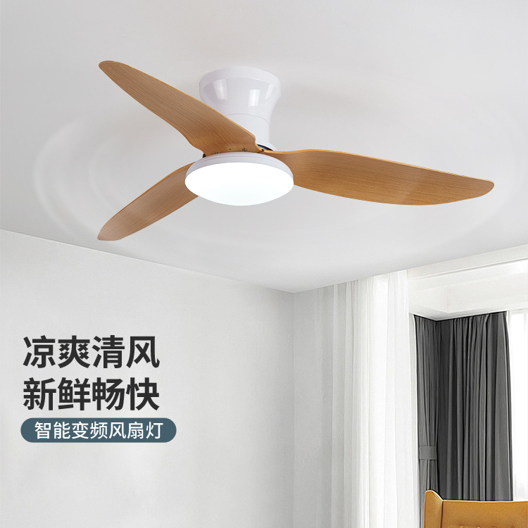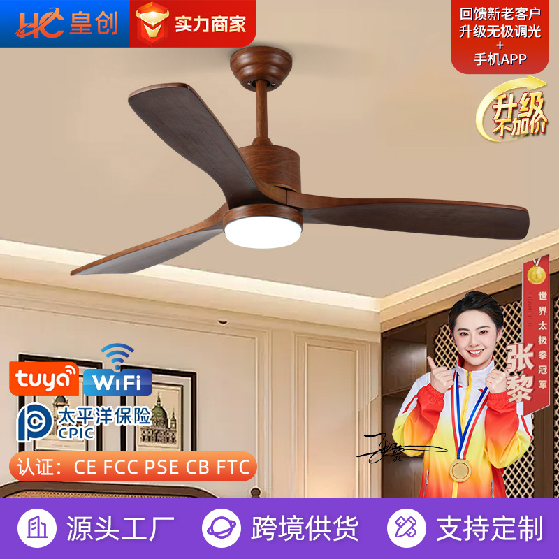 フルスペクトル三葉シーリングファンライト無垢材可変周波数レストランシーリングファンライトレトロリビングルームベッドルームソフトファンライト