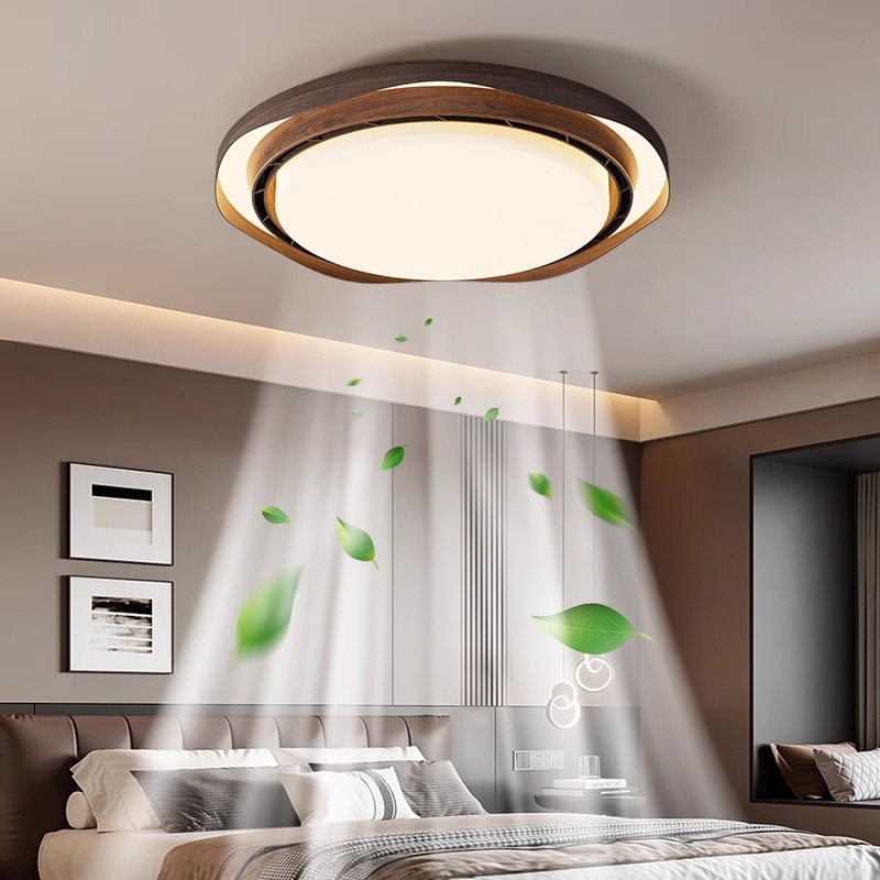 2025 新しいブレードレスファンランプアンティークスタイルウォールナットカラー寝室のシーリングランプラウンドミニマリスト空気循環ファンランプ