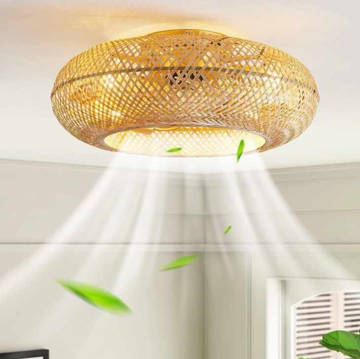 アマゾンクロスボーダー110v寝室レストラン天井ファンランプ藤製ケージ付き竹編みファンランプ一体