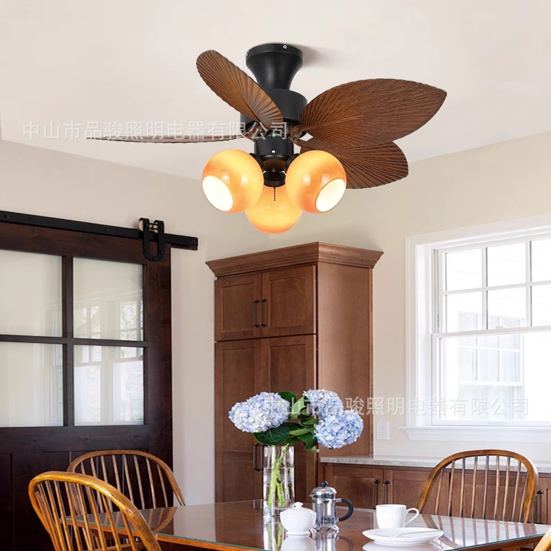 実木直葉ファンランプ110vアメリカ式レストランリビングホテルマンション吊り扇ランプなし新型アマゾン熱売