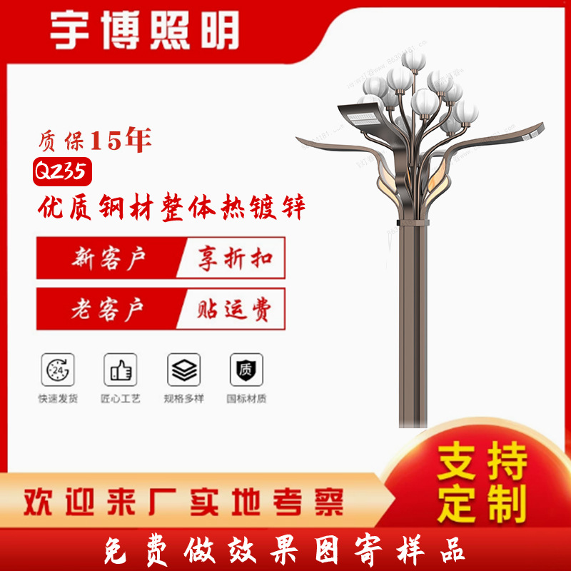 カスタマイズされた中国の街路灯屋外市道路照明マグノリアランプ景勝公園景観ライト 8m ハイポール LED 街路灯