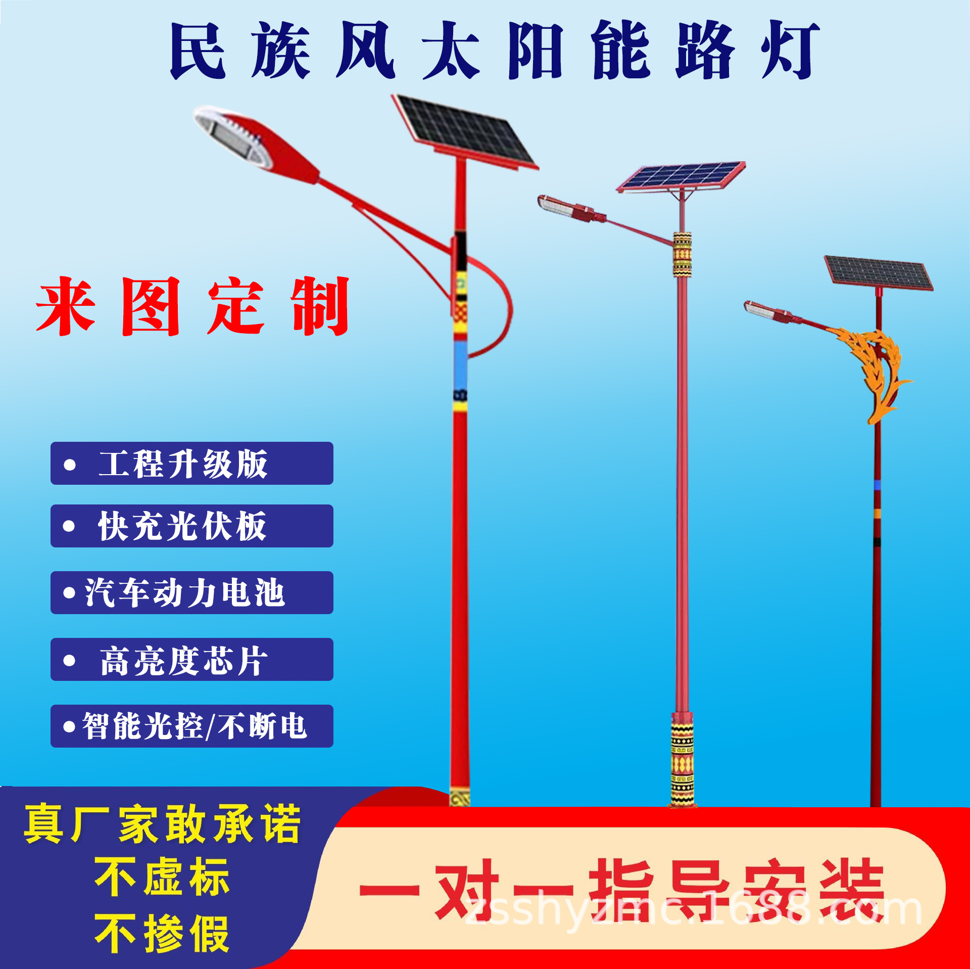 ソーラー街路灯エスニックスタイルの特徴的な景観ライトカスタマイズされた 4/5/6/7/ 8m 新しい田舎の道路灯