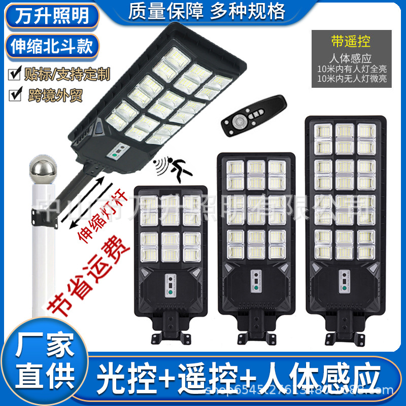 伸縮ポールソーラー街路灯屋外防水統合ガーデンライト三面発光レーダー人体誘導壁ランプ
