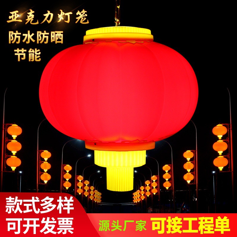 連続道路灯ポール装飾灯太陽エネルギーLED発光屋外プラスチック防水中国赤アクリル提灯