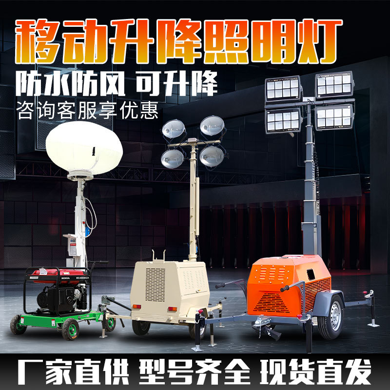 牽引式移動照明車ディーゼル発電機動力10メートル昇降夜間緊急施工移動照明灯