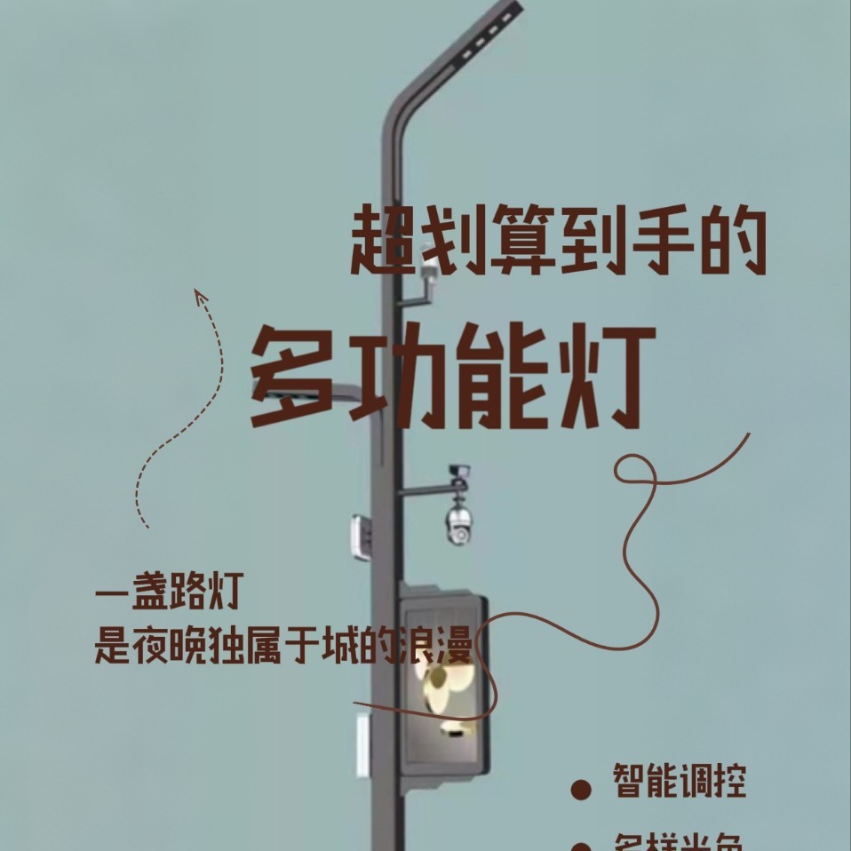 統合共用ポール、複合ポール、多機能信号灯ポール、街路灯監視、歩道統合ポール、梅花照明
