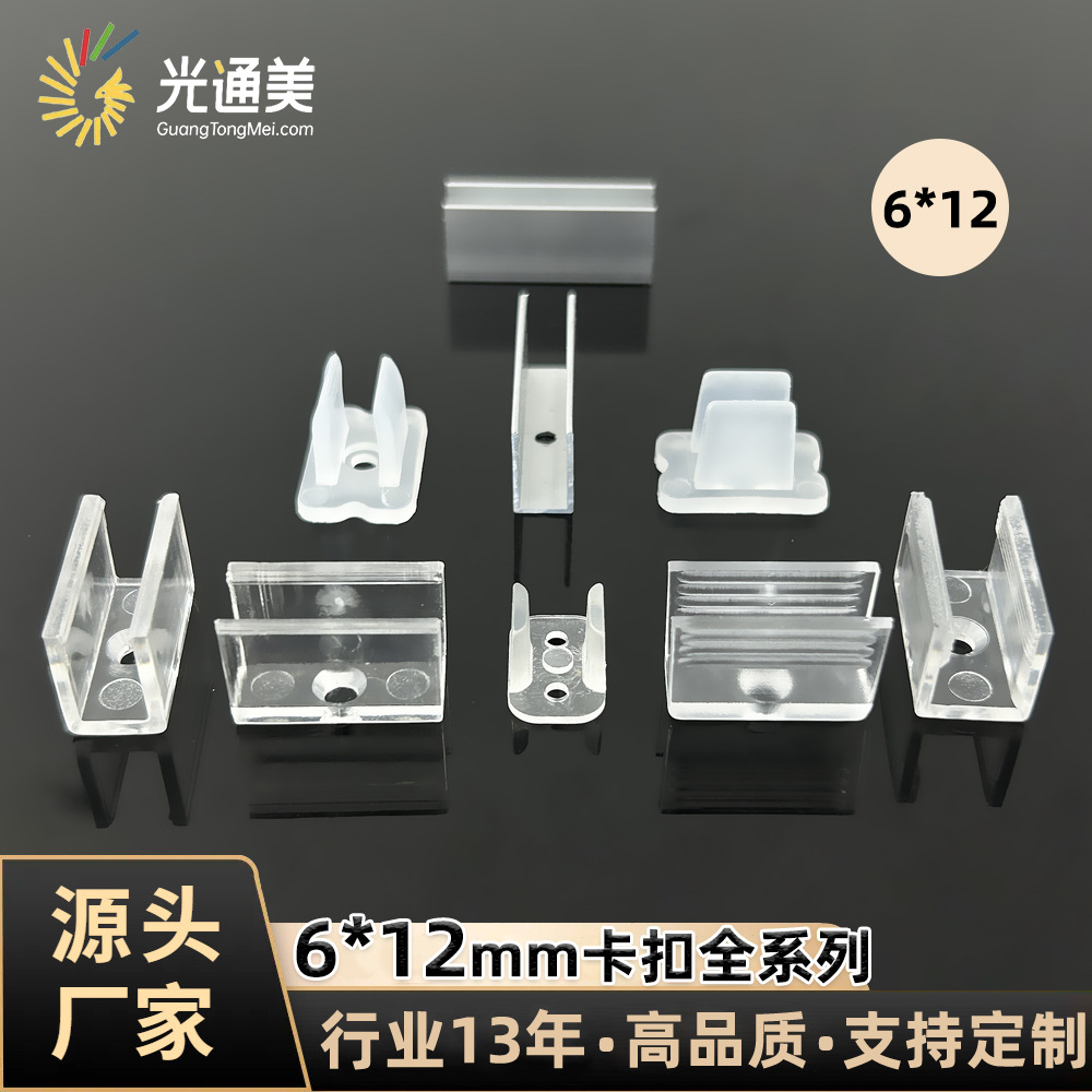 6 * 12mmフレキシブルライト固定バックル付きシリコンネオンバー高透光pcハードクリップ単孔プラスチックカーマ
