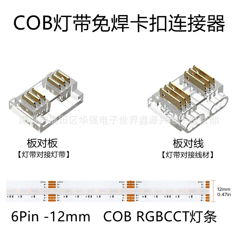 6Pin 12mm COBライトバーLED無溶接クリップ五合一RGBCCTコネクタクリスタルバックル板対板線