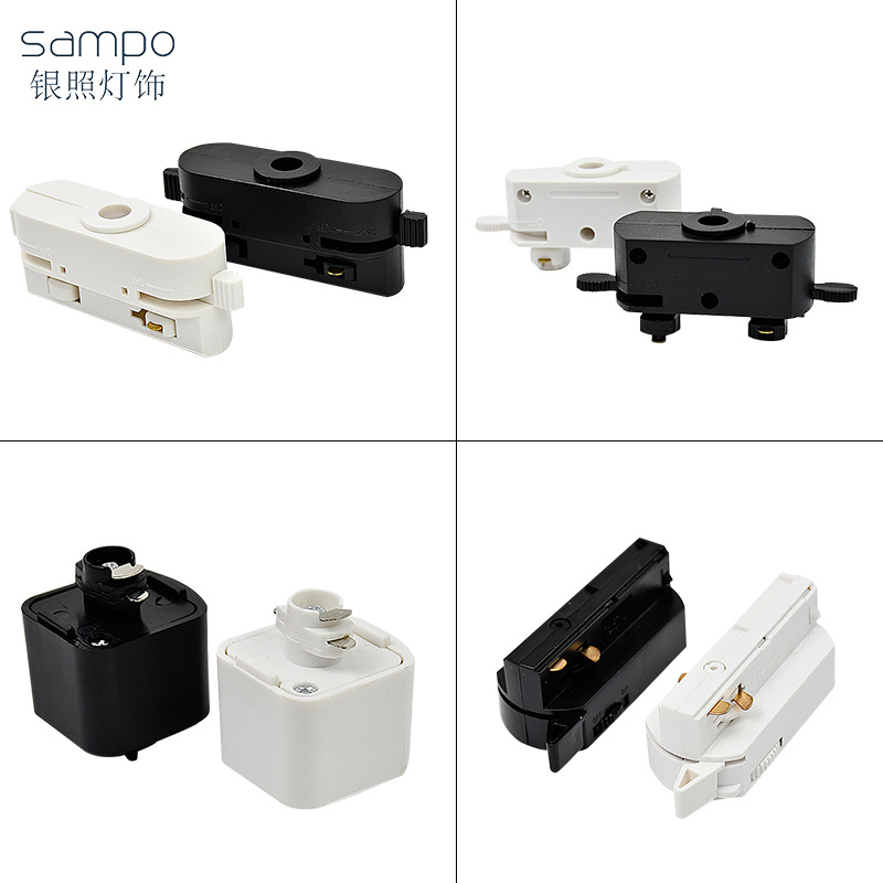 三線軌道箱スポットライトコネクタのガイドレールの白黒軌道ランプの部品の3線のガイドレールのヘッド