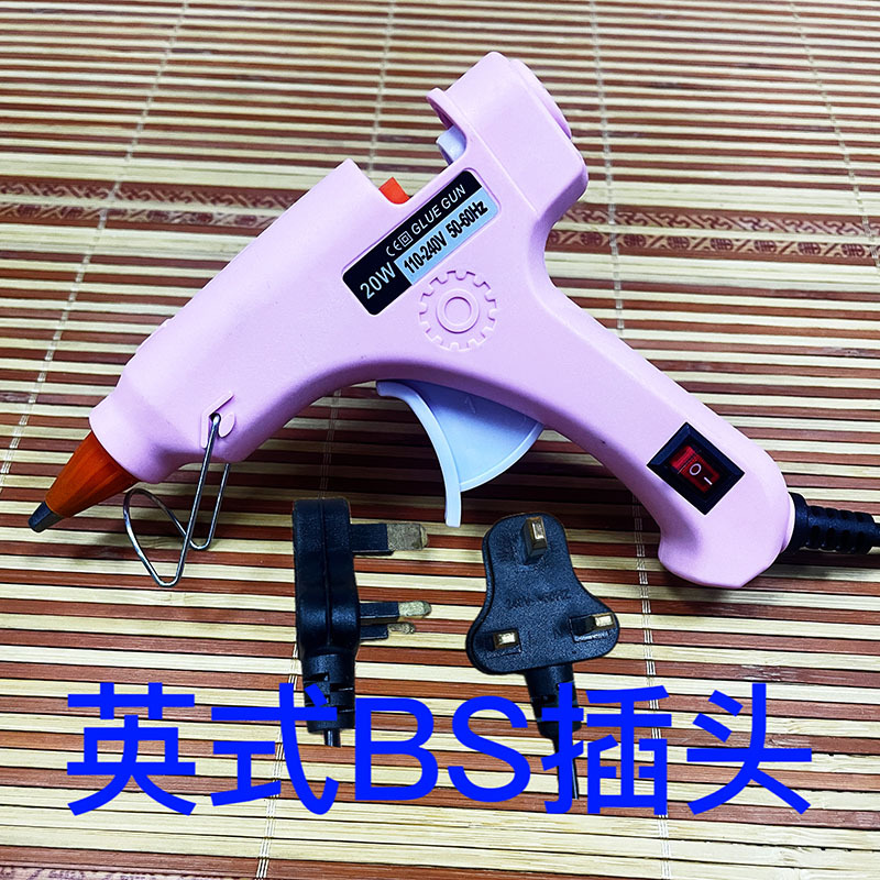 英国規格ホットメルトグルーガン20W、英国プラグ、スイッチ付き小型グルーガン、保護ノズル設計、7mmポータブルグルーガン対応