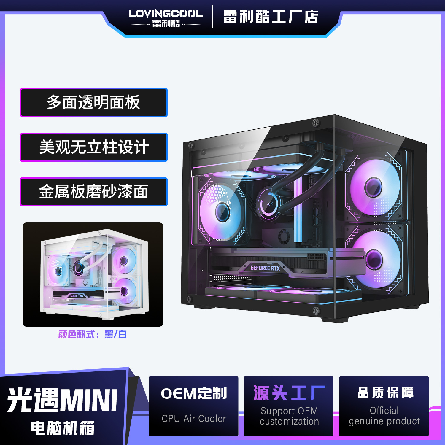 LOVINGCOOL雷利酷EATX大筐体ATXデスクトップ電気競争パソコンは360水冷クロスボーダー卸売りをサポートしています。