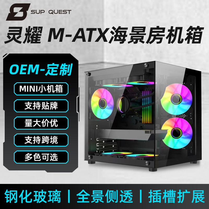霊耀MINIファッション外観M-ATX海景房ケース無柱側透電電デスクトップパソコンケース