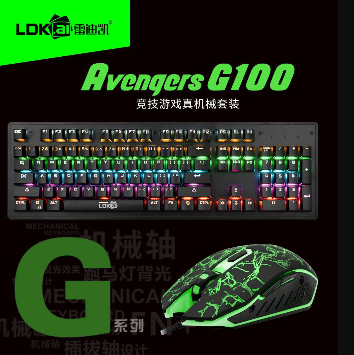 レディケg100真機械キーボードマウスセット青軸黒科技バックライト走馬灯ゲームキーボード卸売り