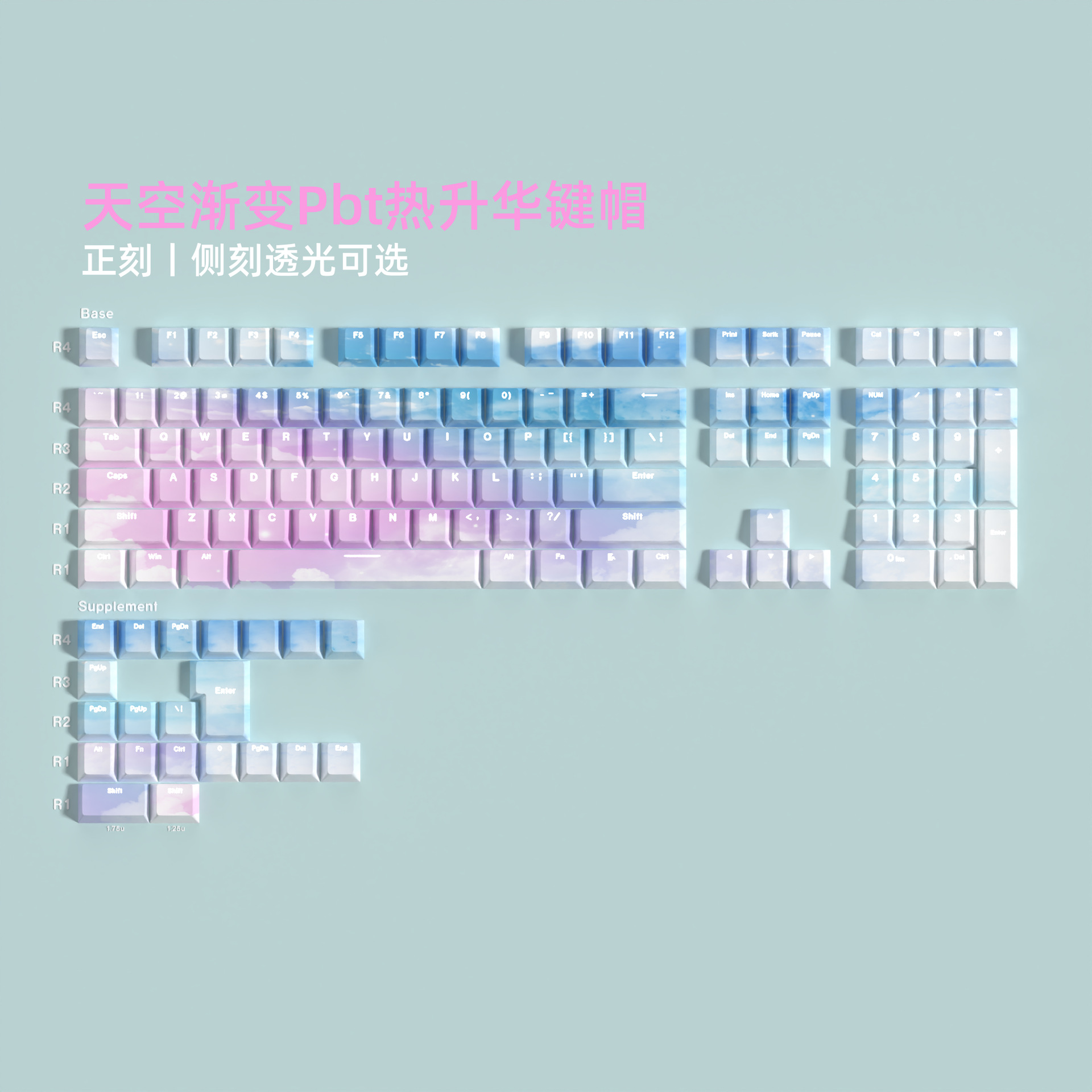 JCM天空グラデーションキーキャップ正刻側刻透光文字132キーケース大フルセットメカニカルキーボードキャップ