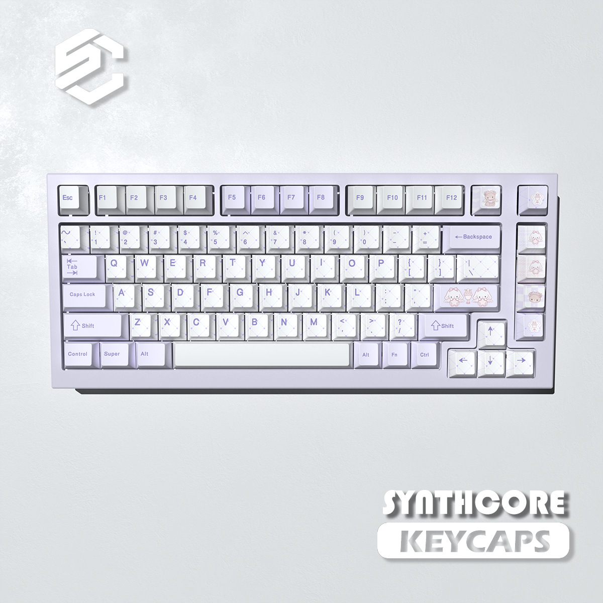 バニーティーパーティーキーキャップオリジナルpbt昇華カスタマイズキーキャップ5面昇華ラベンダーパープルウーティング