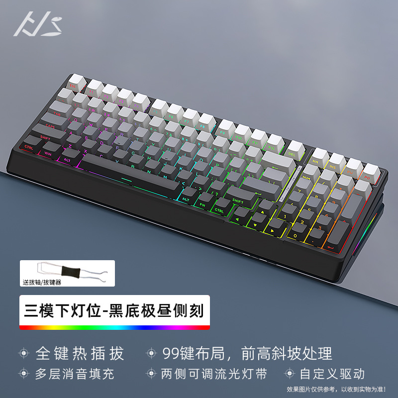 現物卸売りクロスボーダー黒吉蛇yg 98機械キーボードセットRGB三モードbluetooth有/無線ホットプラグ軸