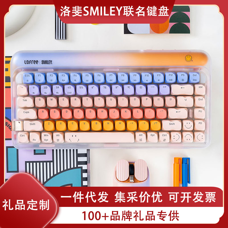 洛斐粉底液スマイリー笑顔連名タイプbluetooth機械キーボードマウスプレゼント女の子ホットプラグ84キー