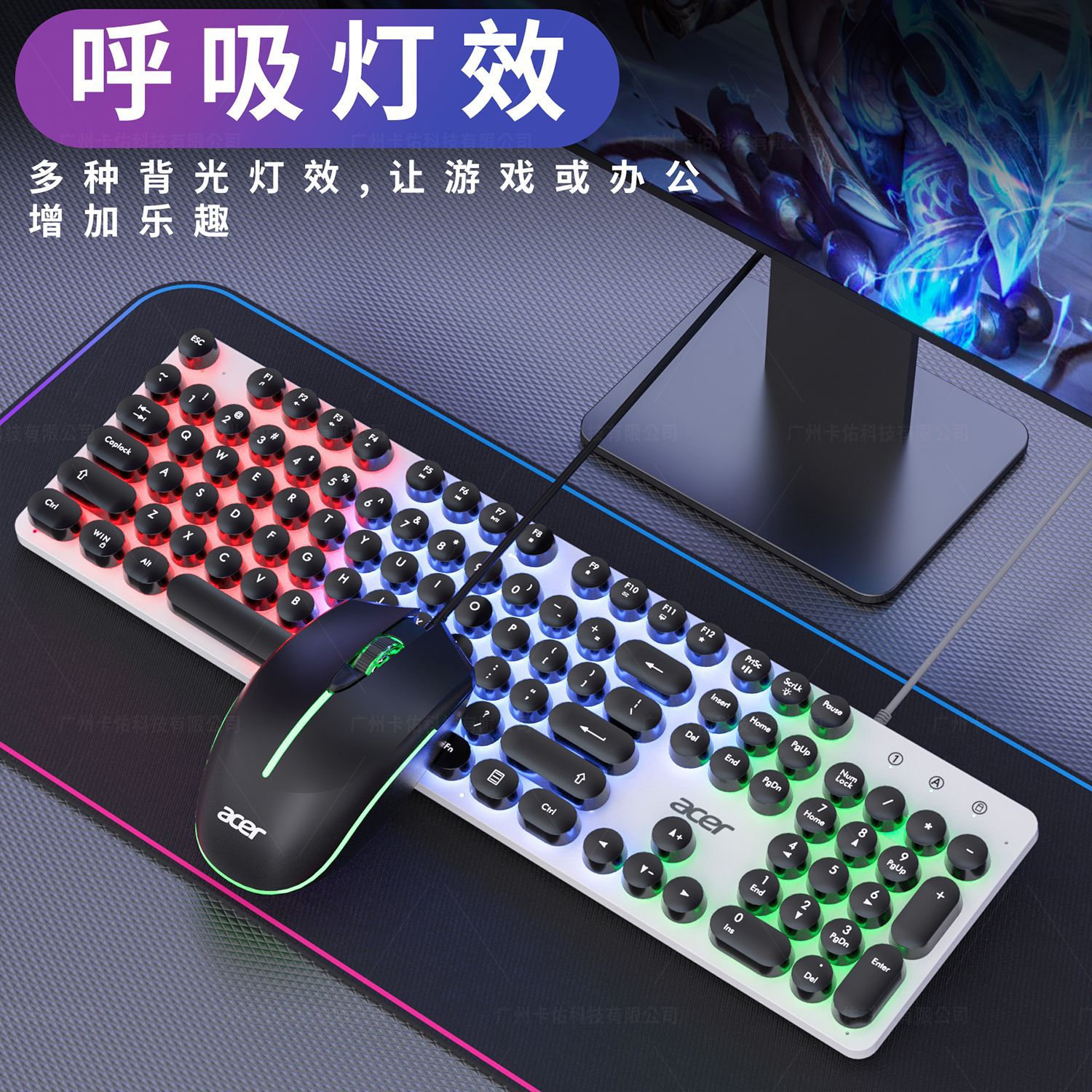 OCC205パンク有線キーボードマウスセット機械手触り発光コンピュータ汎用円形キーキャップ