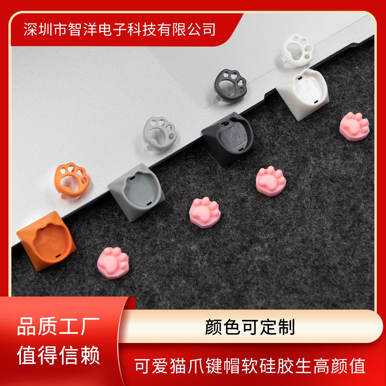 可愛い猫の爪型キーキャップ、PC用単品DIYソフトシリコン製、高品質で女の子らしい、白とピンクの色はカスタマイズ可能。
