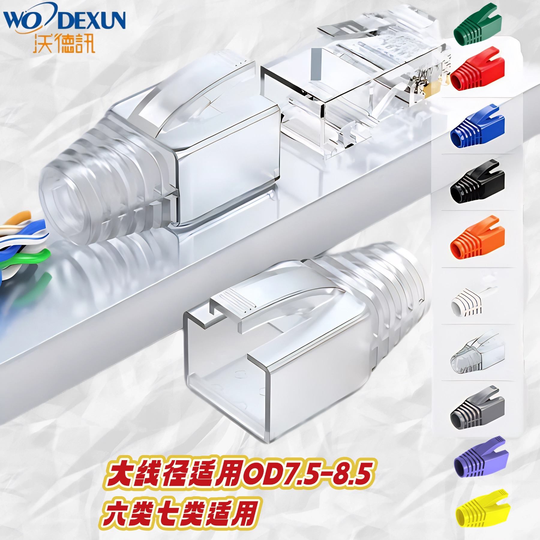 クリスタルヘッド保護カバー7種類8p 8cゴムカバーRJ45ネットワークケーブルOD8.5mm 7種類のクリスタルヘッド保護カバー