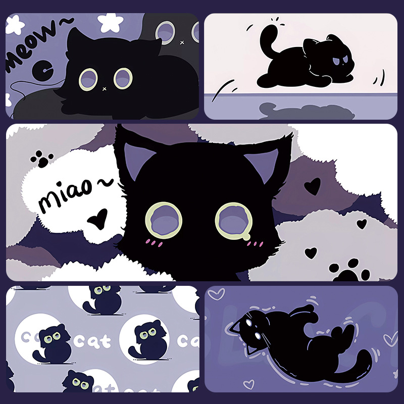漫画黒猫マウスパッド超大型学生電気競争ゲームアニメ二次元コンピュータキーボードパッド机マット