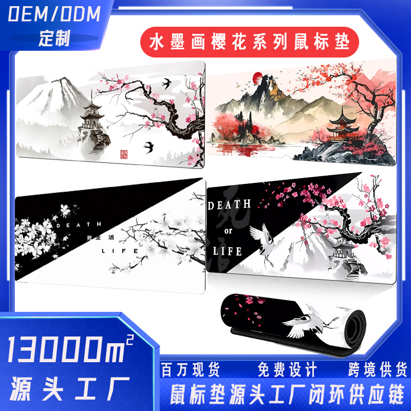 アマゾン水墨桜マウスパッド大サイズ事務机パッド死生活白黒シリーズマウスパッドゴム滑り止め
