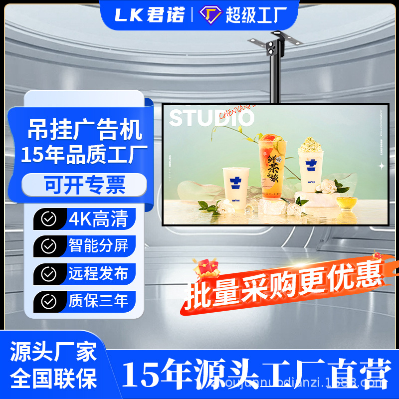 つり下げ超清情報発表広告ディスプレイ液晶超薄型タッチ広告機ミルクティー店テレビディスプレイ