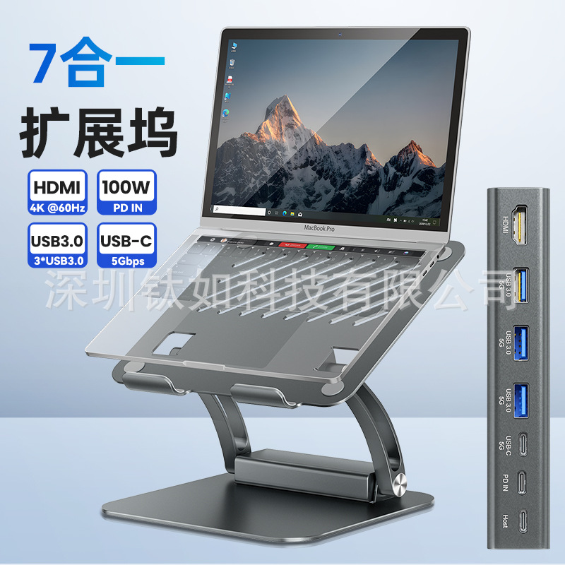 7合1ノートスタンドPD急速充電折り畳みUSB拡張ドックパソコンの高さスタンドはHDMI付きで画面と連携している