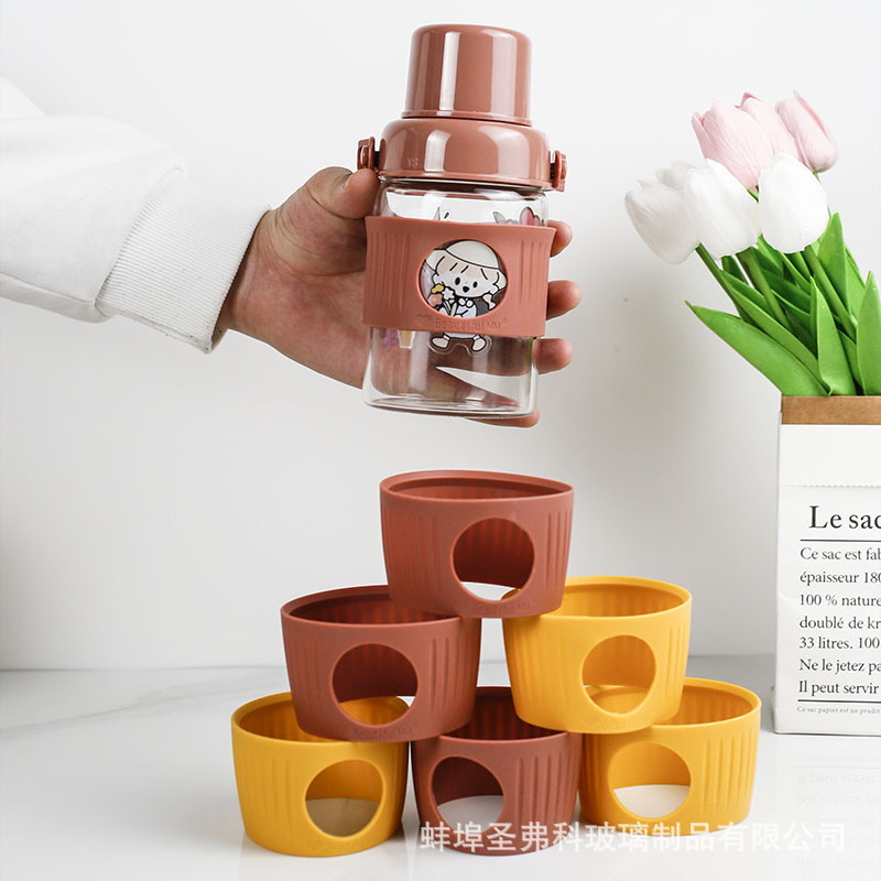 現物卸売りシリカゲルガラス陶磁器カップセット滑り止め断熱カップ保温カップセット水カップシリカゲル保護カバー