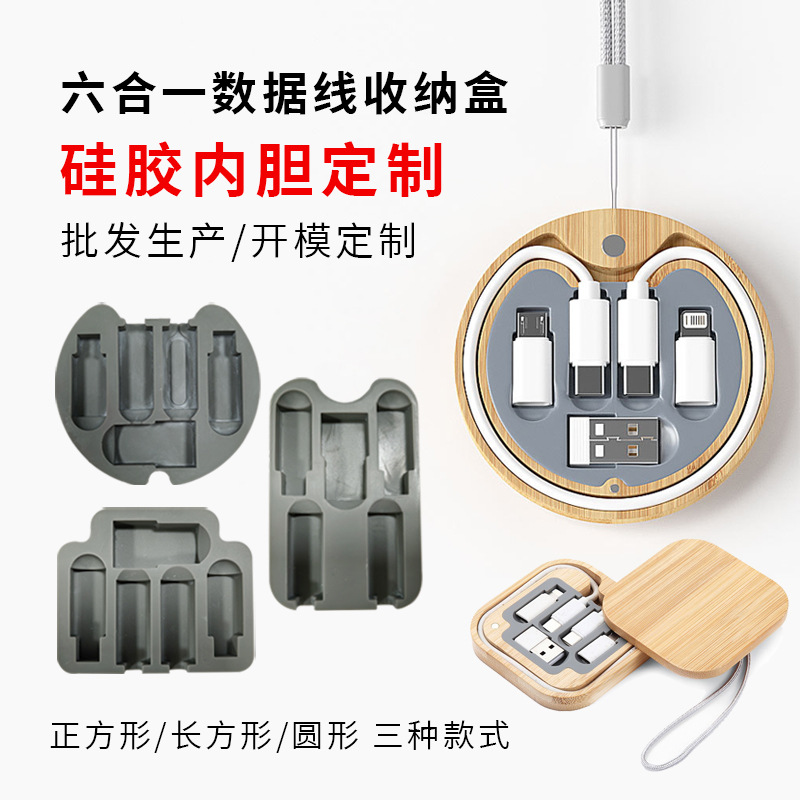 国境を越えた卸売竹と木材の6-in-1高速充電データケーブル収納ボックスシリコンインナーシェルケーブル管理ボックスシリコンパッドカスタマイズ