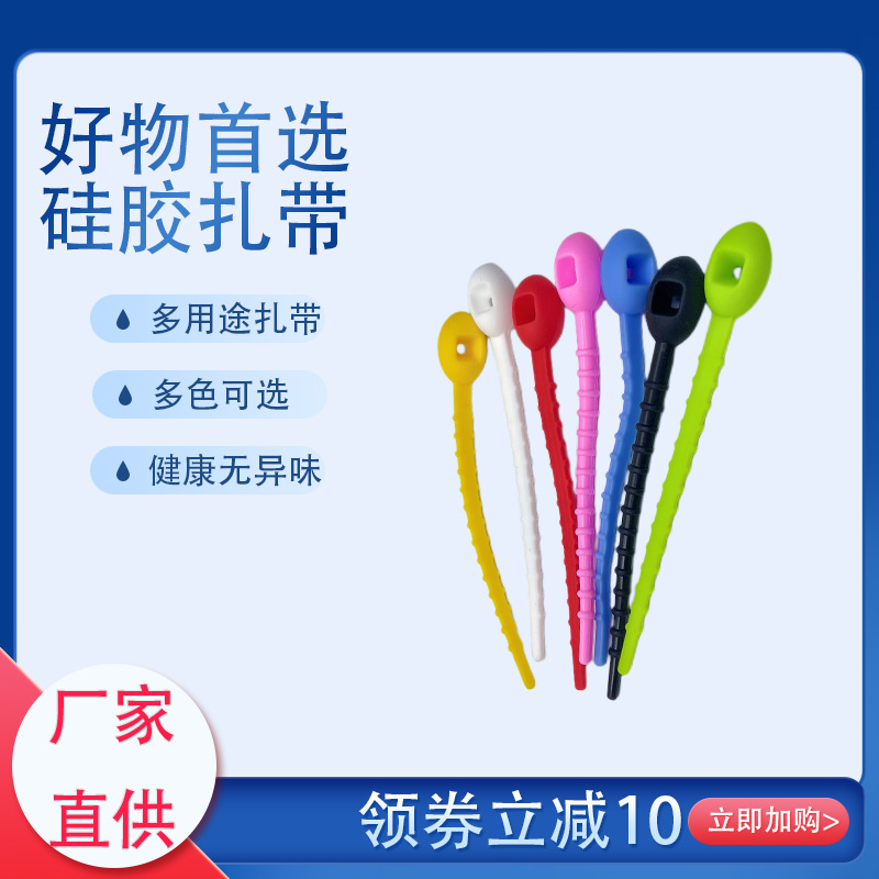 多機能シリコン製小型結束バンド、オタマジャクシ型、調節可能な留め具付き吊り下げロープ、食品袋結束バンド(メーカー直販)