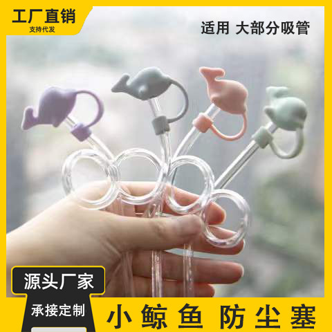 食品級ストロー防塵プラグシリコン漫画ガラスプラスチックストローキャップかわいいクジラカップストロープラグ卸売り