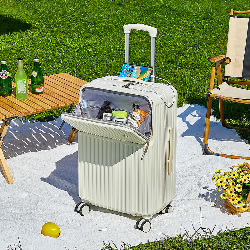 2025新型フロントオープンスーツケース女性多機能搭乗パスワードスーツケース万向輪旅行スーツケース男