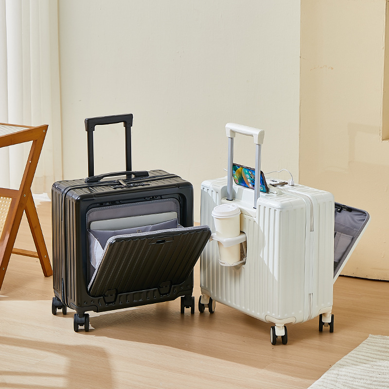 新しいサイドオープンスーツケースの女性は、多機能スーツケースの20インチのスーツケースを拡張することができます。