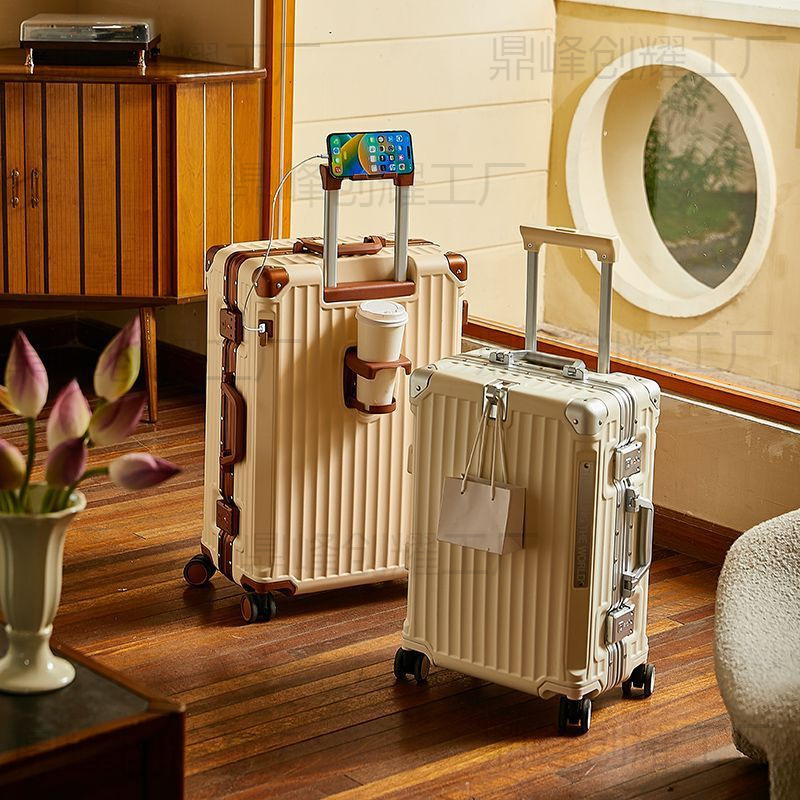2024 新しいスーツケース女性の PC トロリーケース強くて耐久性のあるインターネット有名人のファッションレトロスーツケース学生レザーケース