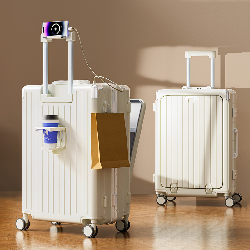 エアウェイアルミフレームフロントオープンスーツケース女性用 20inch ワイドトロリーボーディングスーツケース男性用多機能スーツケーストロリーケース