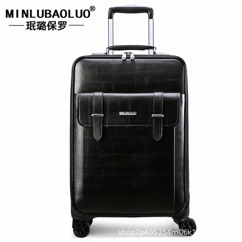 新しい高級スーツケース、丈夫で耐久性のあるレザースーツケース、18インチユニバーサルホイールトロリーケース、大型ビジネスメンズトラベルボーディングケース
