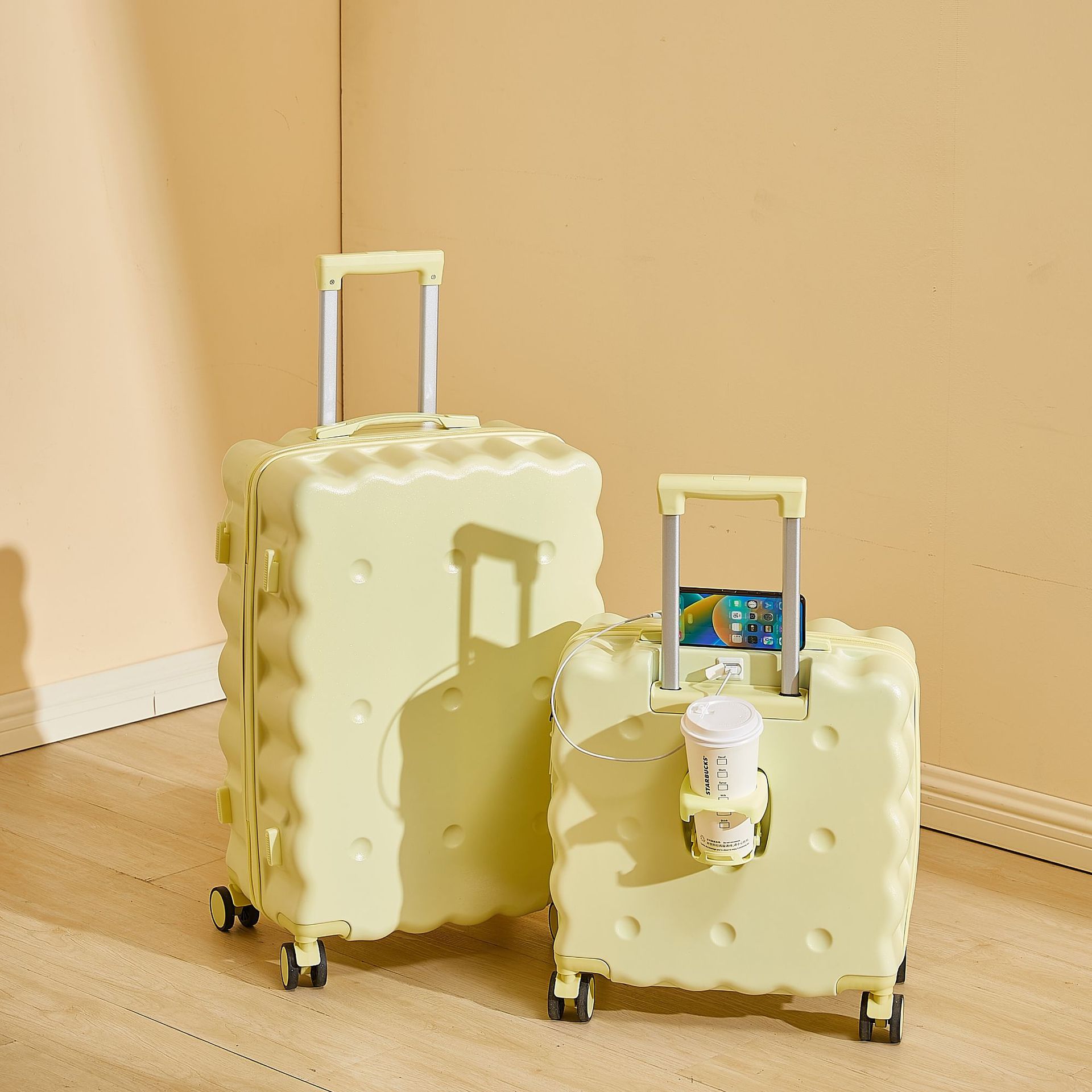 機内持ち込み可能な小型スーツケース、アイスクリーム柄のキャリーケース、女性向け、丈夫、男性向け、多方向回転ホイール、パスワードロック付きトラベルケース、充電ポート付き