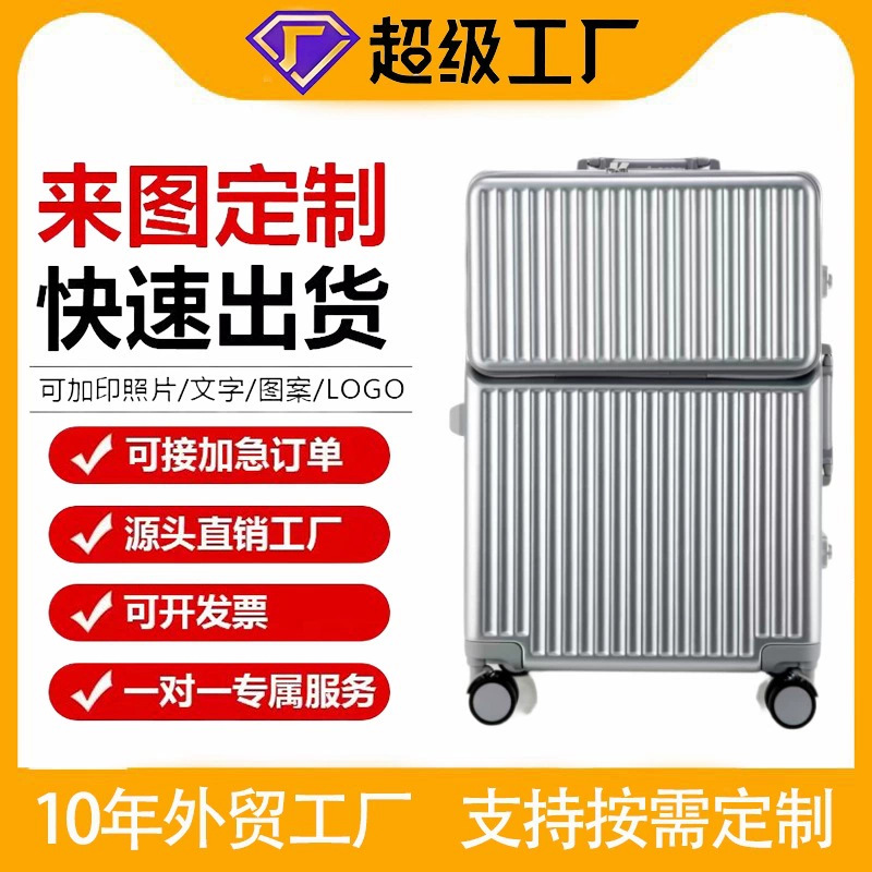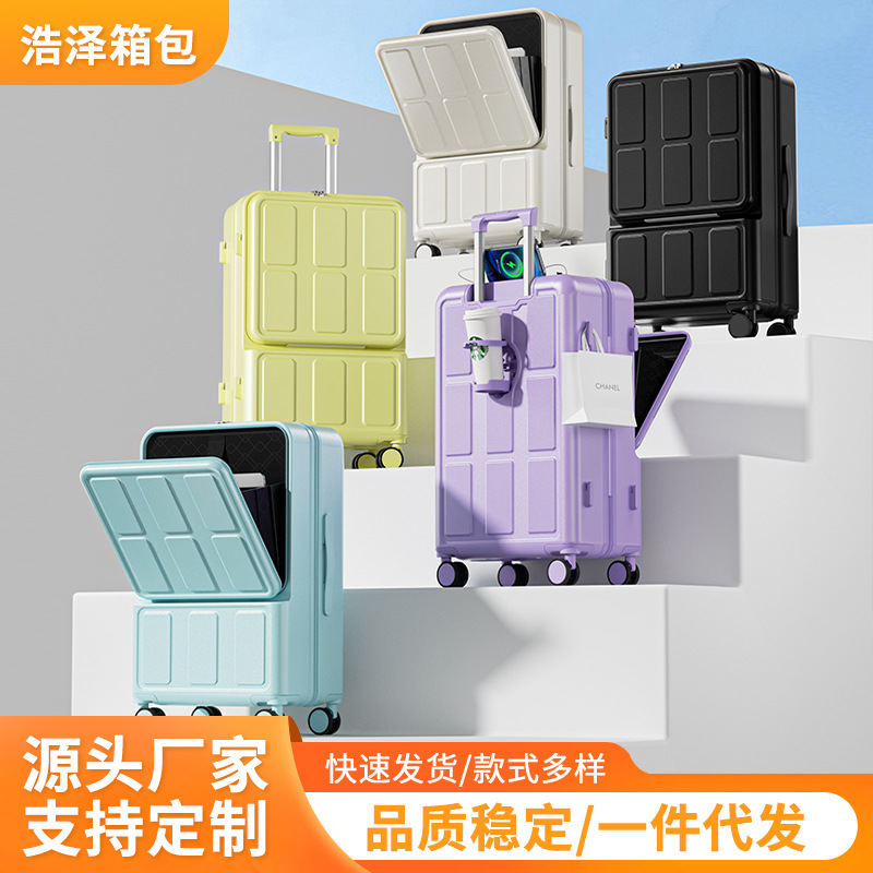 クロスボーダー新しいカスタマイズされたスーツケースフロントオープン小型スーツケース女性の卸売多機能スーツケース男性のブレーキホイール