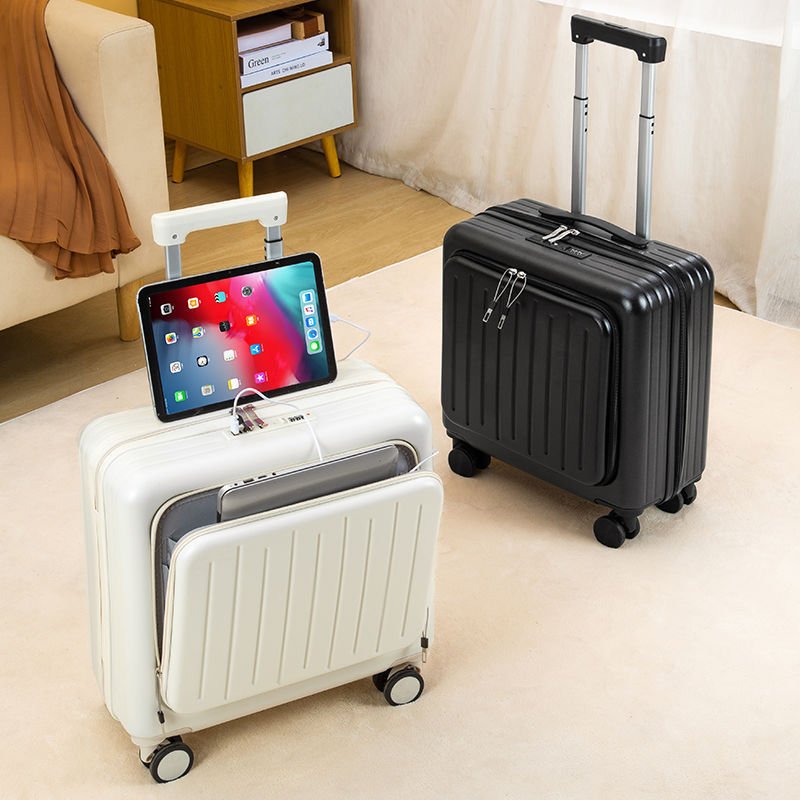 大容量フロントオープン式スーツケース 多目的カップホルダー付きトラベルケース パスワードロック付きメンズ機内持ち込みトロリーケース