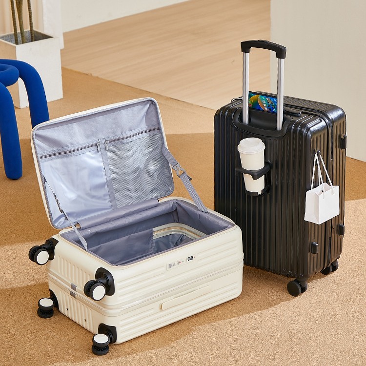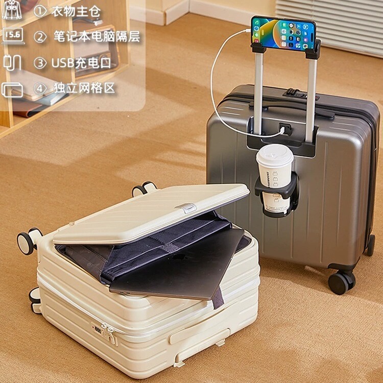新型多機能トロリーケース、機内持ち込み可能スーツケース、男女兼用トラベルケース、フロントオープン式クロスボーダースーツケース、印刷卸売カスタマイズ