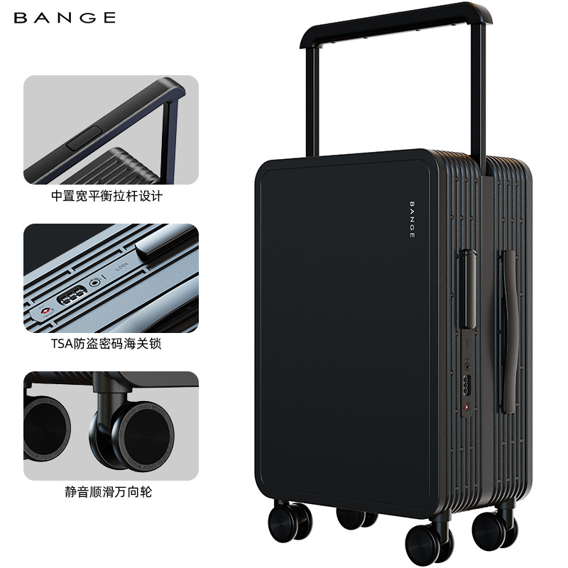 フロントオープンスーツケース、レディーストロリーケース、メンズ小型軽量パスワードスーツケース、搭乗レザーケース、ジッパー