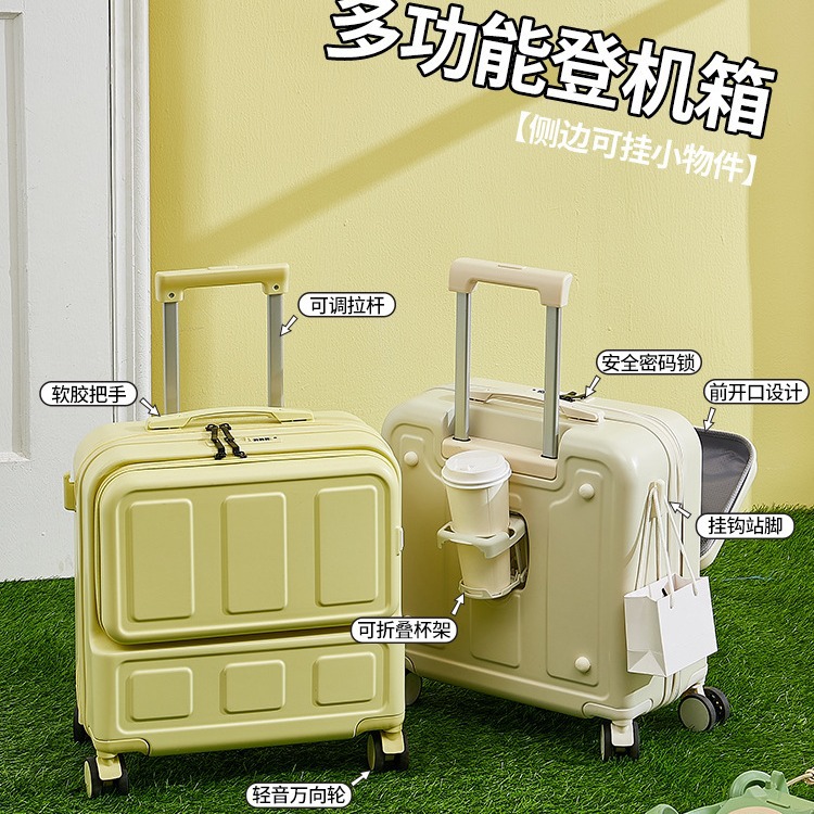 多機能フロントオープンスーツケース女性かわいい暗号箱18インチ小型軽量ビジネス搭乗箱男性20