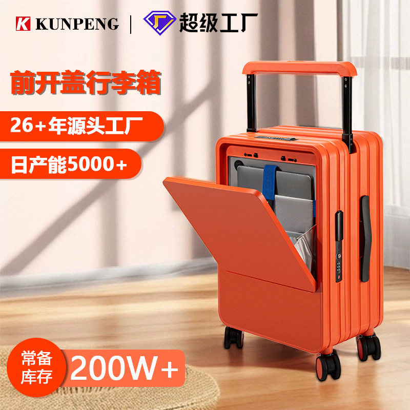 女性用フロントオープンキャリーケース、大容量24inchトロリーケース、男性用耐衝撃スーツケース、新作20inch搭乗バッグ