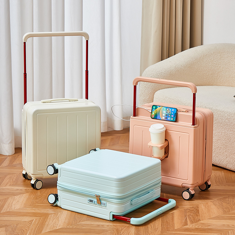 2025新型多機能高颜値スーツケースUSB充電インターフェース旅行箱コップ棚静音ユニバーサルホイール