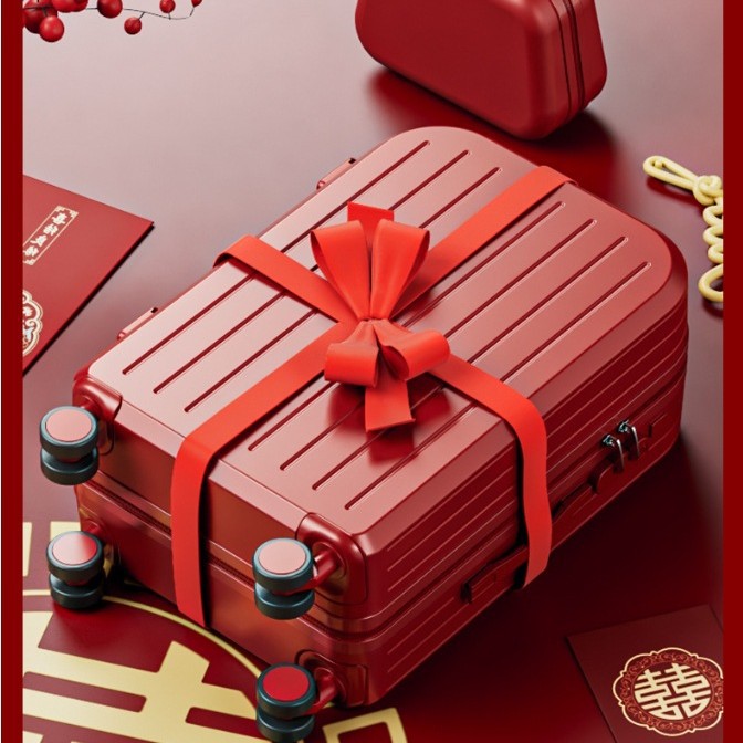 箱のパスワード、嫁入り金、結婚用スーツケース、赤い婚約用嫁入り金箱、女性用トロリーケース、花嫁、結婚式、旅行用スーツケース